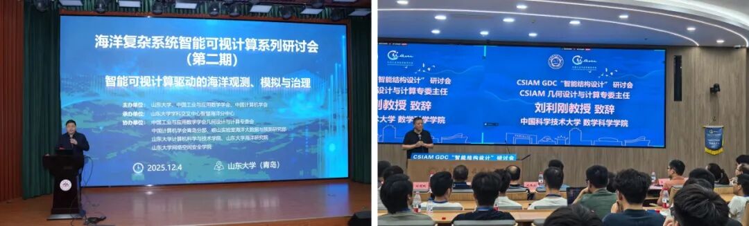 学术品牌活动引领前沿:2025年8月20日-23日,在山东烟台举办了第十七届中国工业与应用数学学会几何设计与计算大会,参会人数超1000人,议程包括8个特邀报告、2项专题课程、20项专题论坛、7场特别研讨论坛和3项学科挑战赛,华为、中望、广联达、宇树科技、云深处科技等高科技企业作为大会合作伙伴深度参与,会上还组织了北斗沙龙活动,为青年教师职业路径规划、研究方向选择和项目申请提供咨询与指导。
